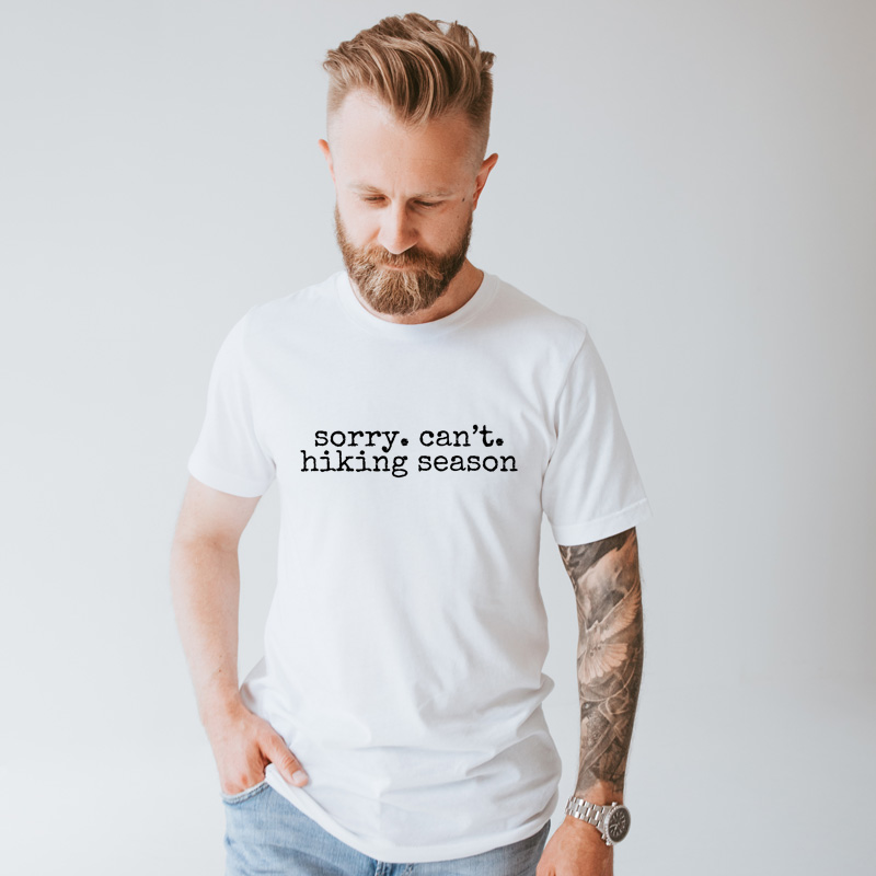 Print Design: Adventure Designs – OUTDOOR HIKING Edgy Minimalist Sorry. Can’t. Hiking Season
