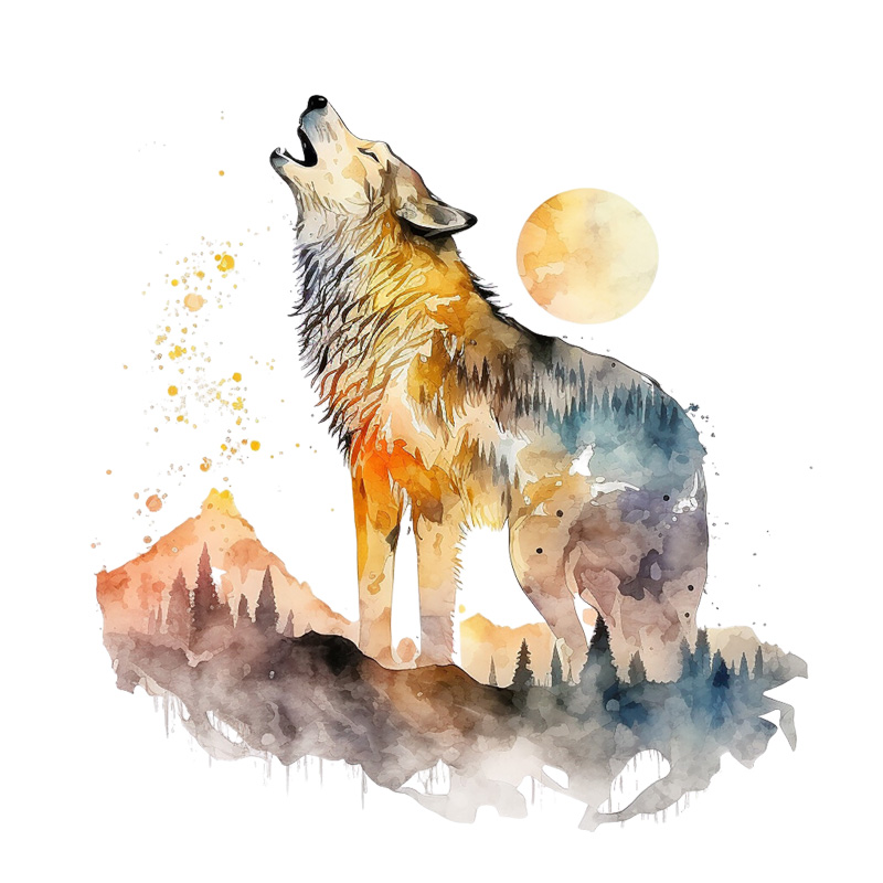 Print Design: Beautiful Watercolor Art Fierce Forest Wolves #01