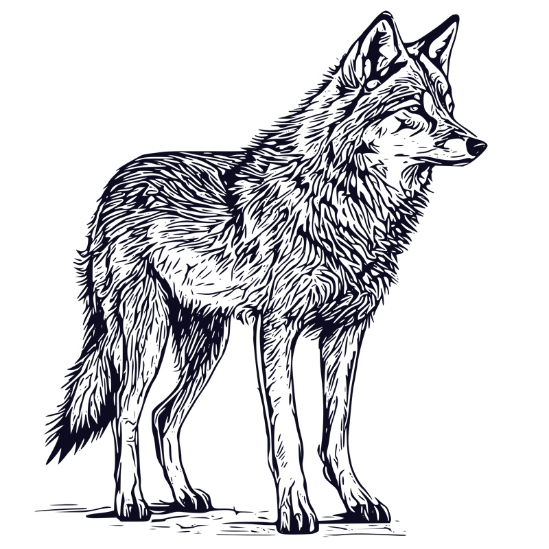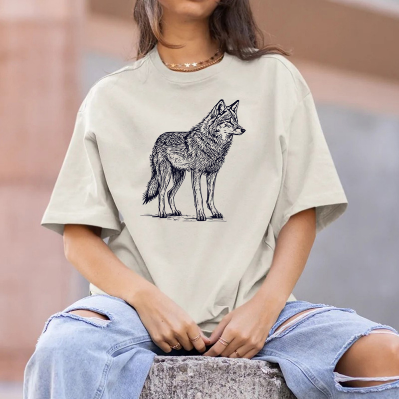 Tee Shirt Printed Sketch Monotone Wolf Art #03