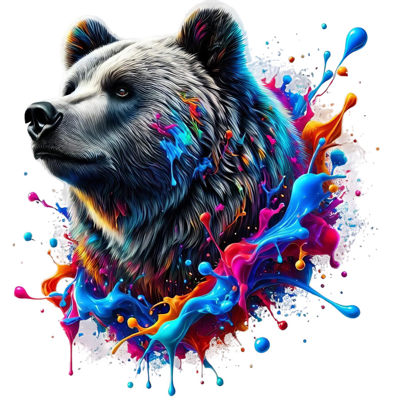 Print Design: Splatter Paint Bear #02